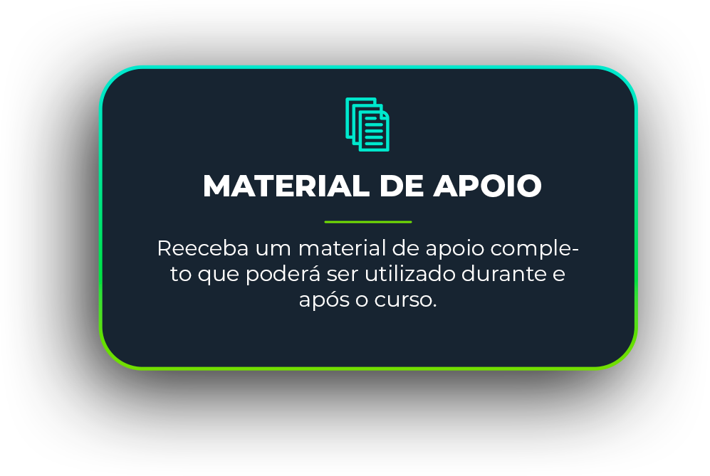 Além das aulas teóricas e práticas, o curso inclui certificado de participação, suporte para dúvidas por 6 meses após o término, material de apoio completo, e oportunidades de networking com outros profissionais da área.